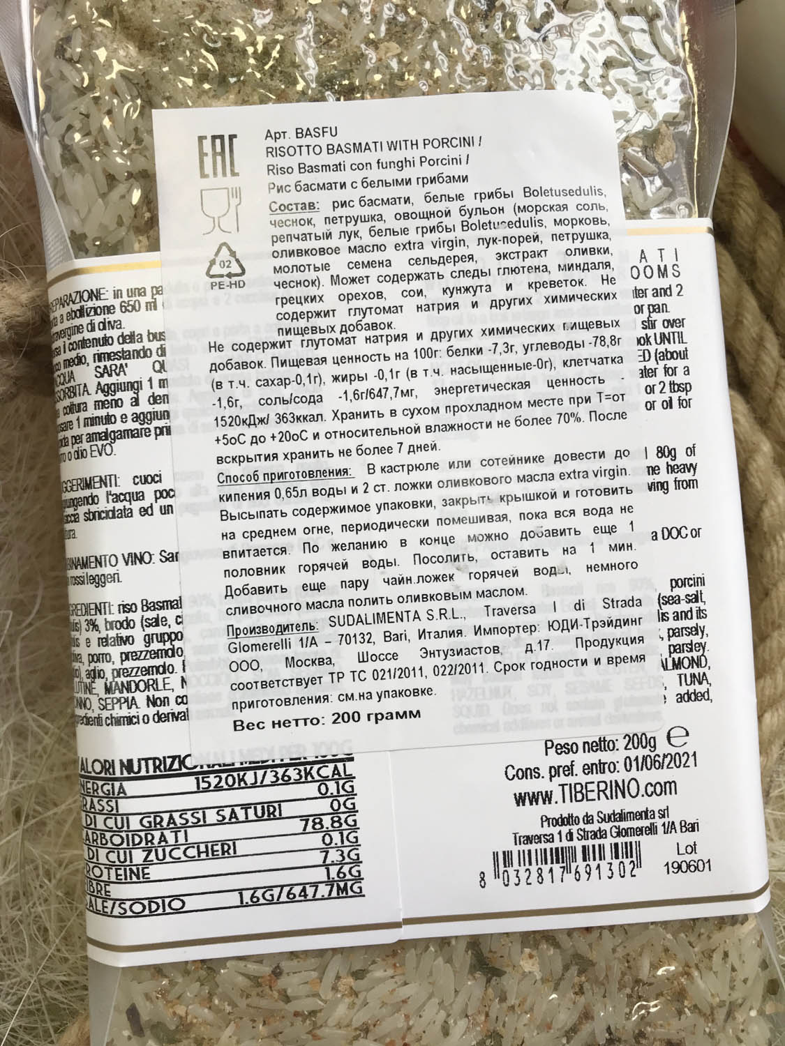 | Оригинальное наименование | RISO BASMATI CON FUNGHI PORCINI 200G |