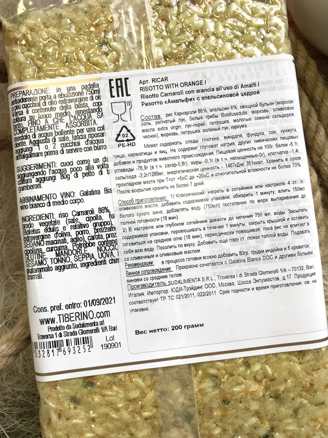 | Оригинальное наименование | RISOTTO CARNAROLI CON ARANCIA ALL'USO DI AMALFI 200G |
