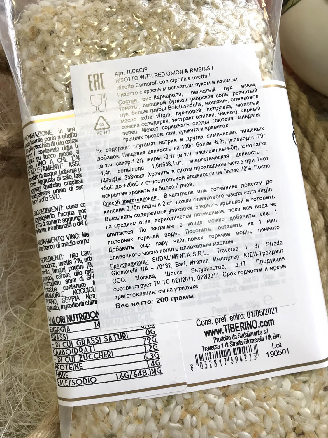 | Оригинальное наименование | RISOTTO CARNAROLI CON CIPOLLA & UVETTA 200G |