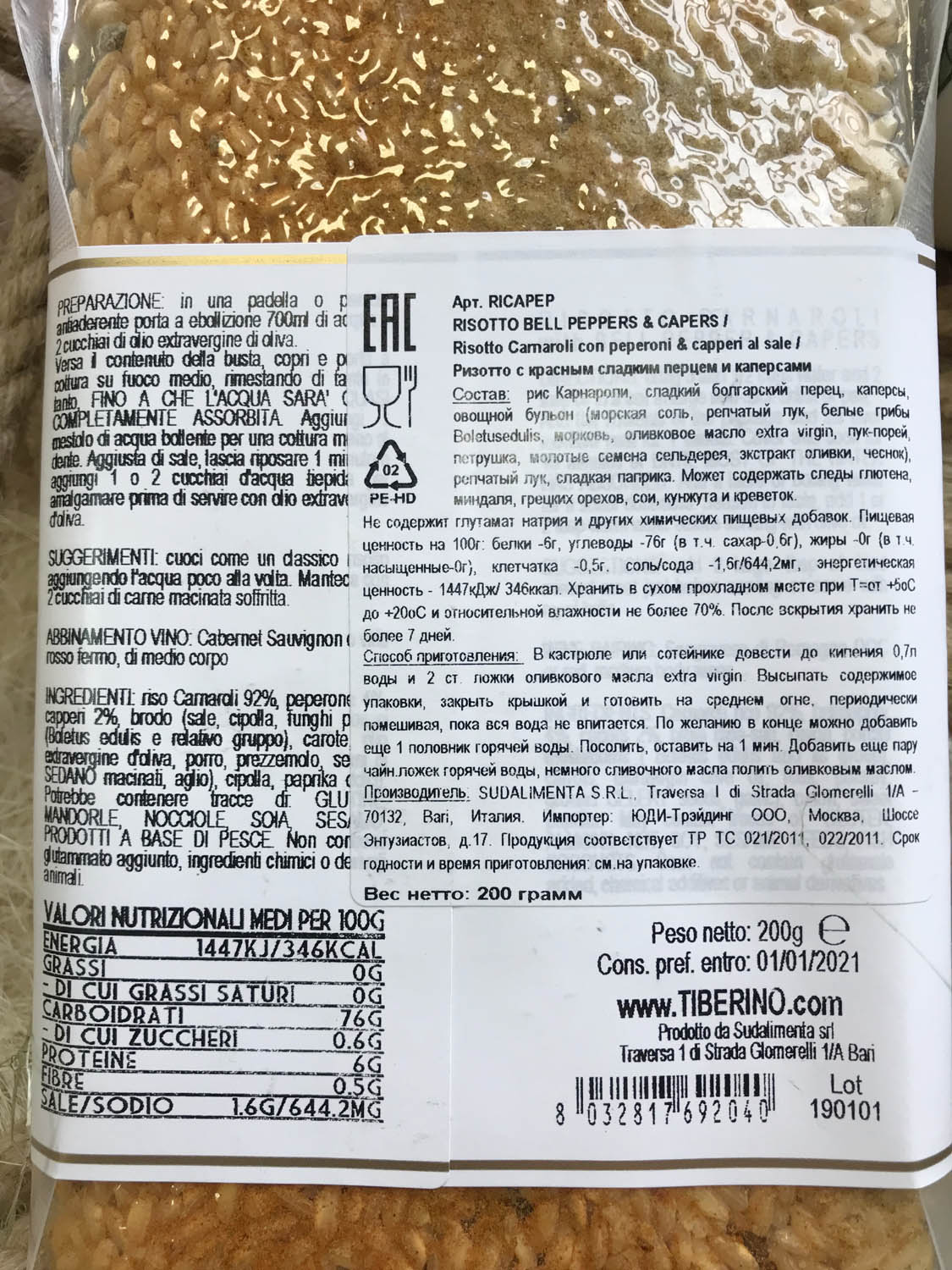 | Оригинальное наименование | RISOTTO CARNAROLI CON PEPERONI & CAPPERI AL SALE 200G |