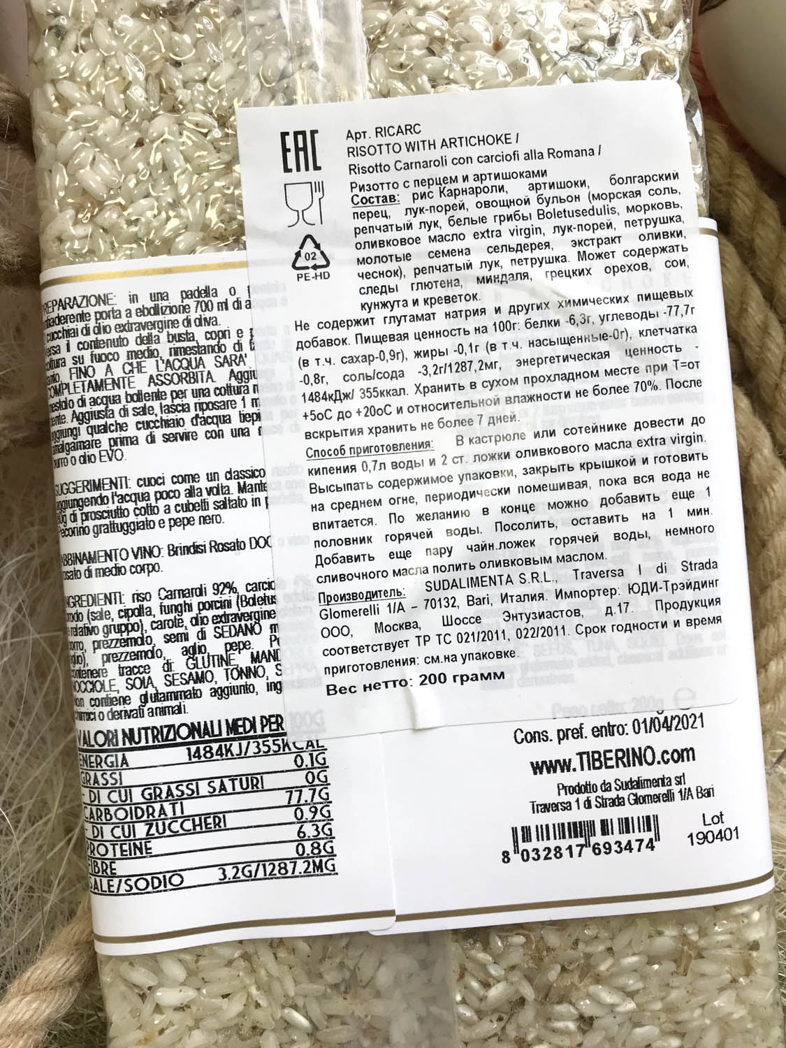 | Оригинальное наименование | RISOTTO CARNAROLI CON CARCOFI ALLA ROMANA 200G |
