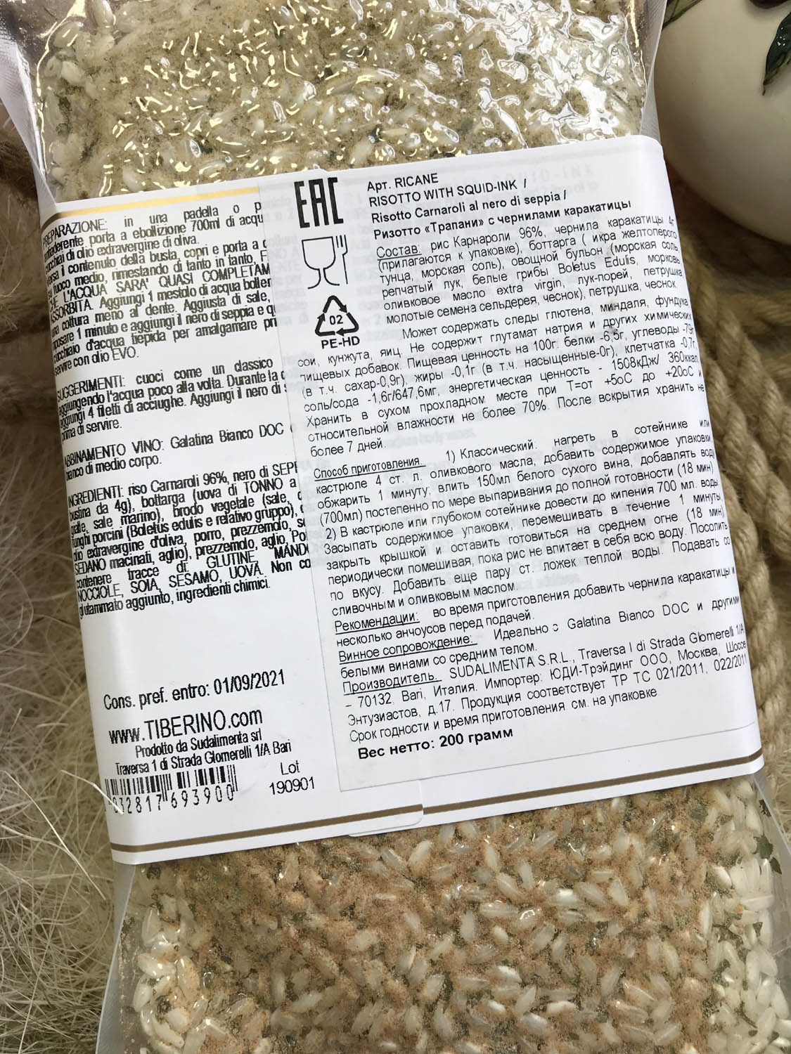 | Оригинальное наименование | RISOTTO CARNAROLI AL NERO DI SEPPIA 200G |