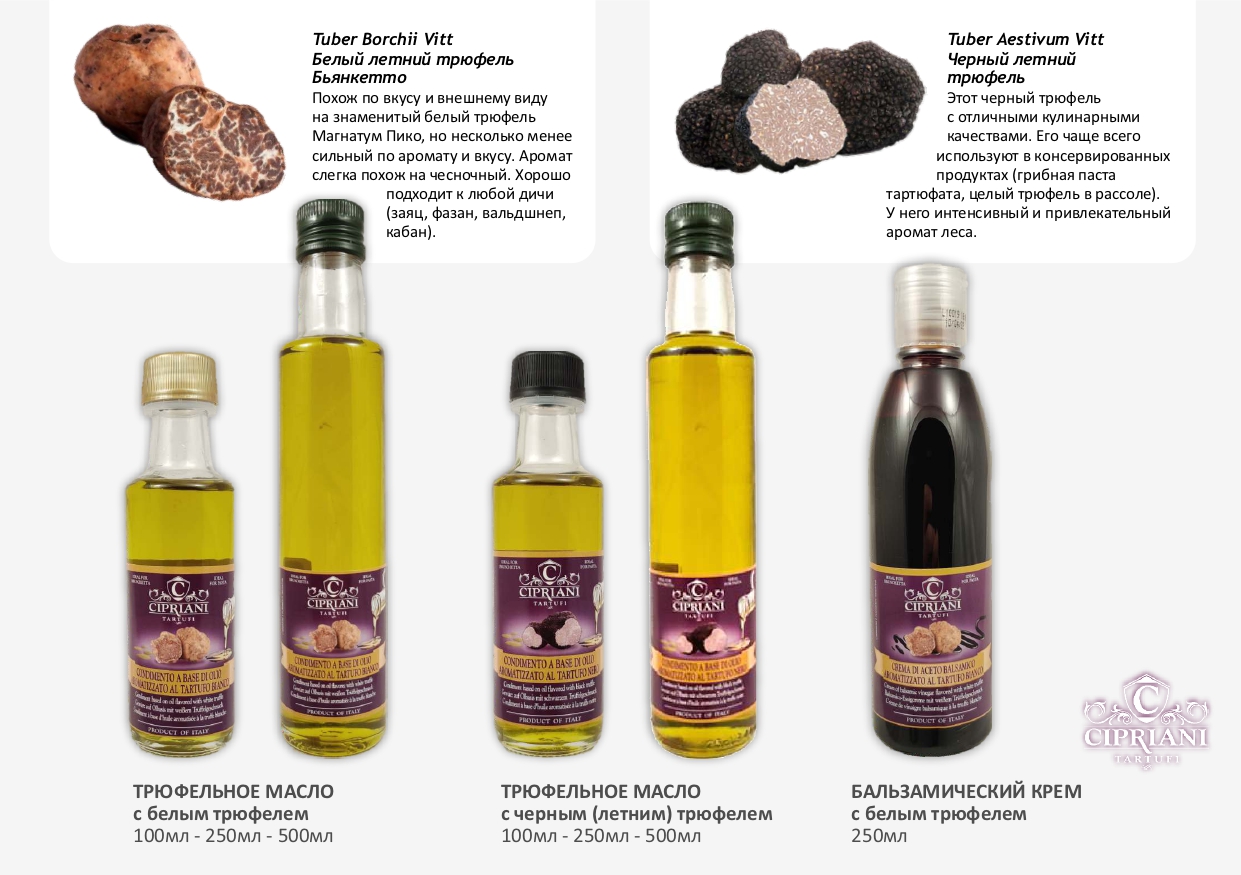 - Трюфельное масло из черного (летнего) и белого трюфеля.