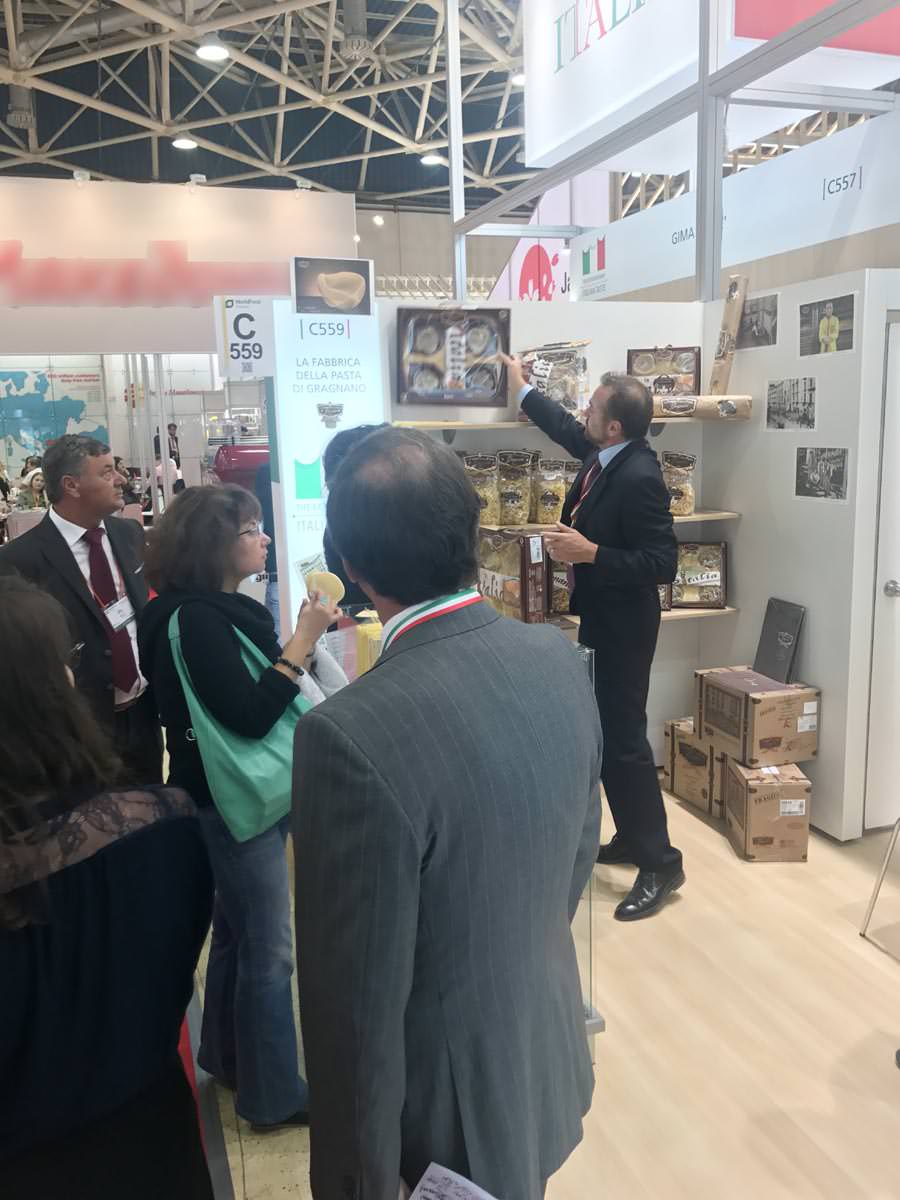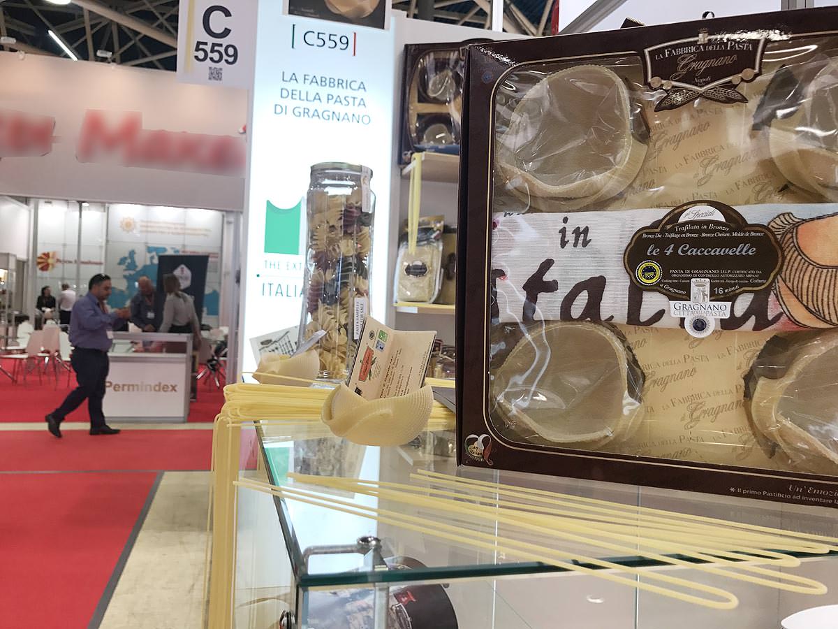 Всемирно известная компания La Fabbrica della Pasta do Gragnano производит уникальный продукт - истинная итальянская паста из городка Граньяно - официально признанной "Родина пасты" (Citta della Pasta) - единственная в мире паста защищённого географического наименования I.G.P. В рамках выставки были презентованы:
