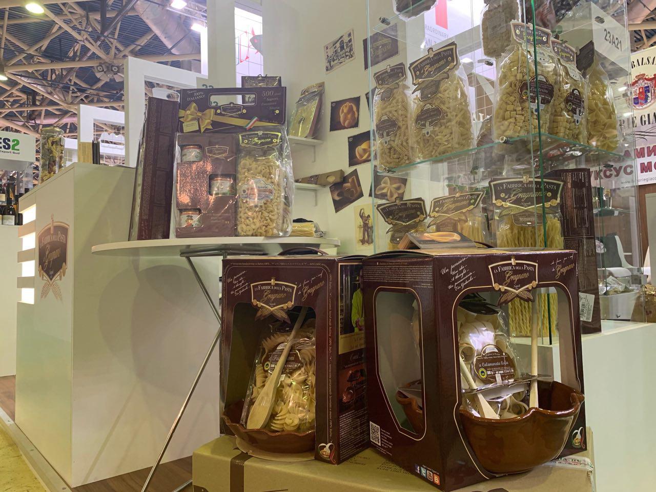 На стендах можно было познакомиться с новинками и с уже широко представленным ассортиментом компаний, включая кофе, классическую пасту, пасту без глютена и подарочные наборы с пастой.