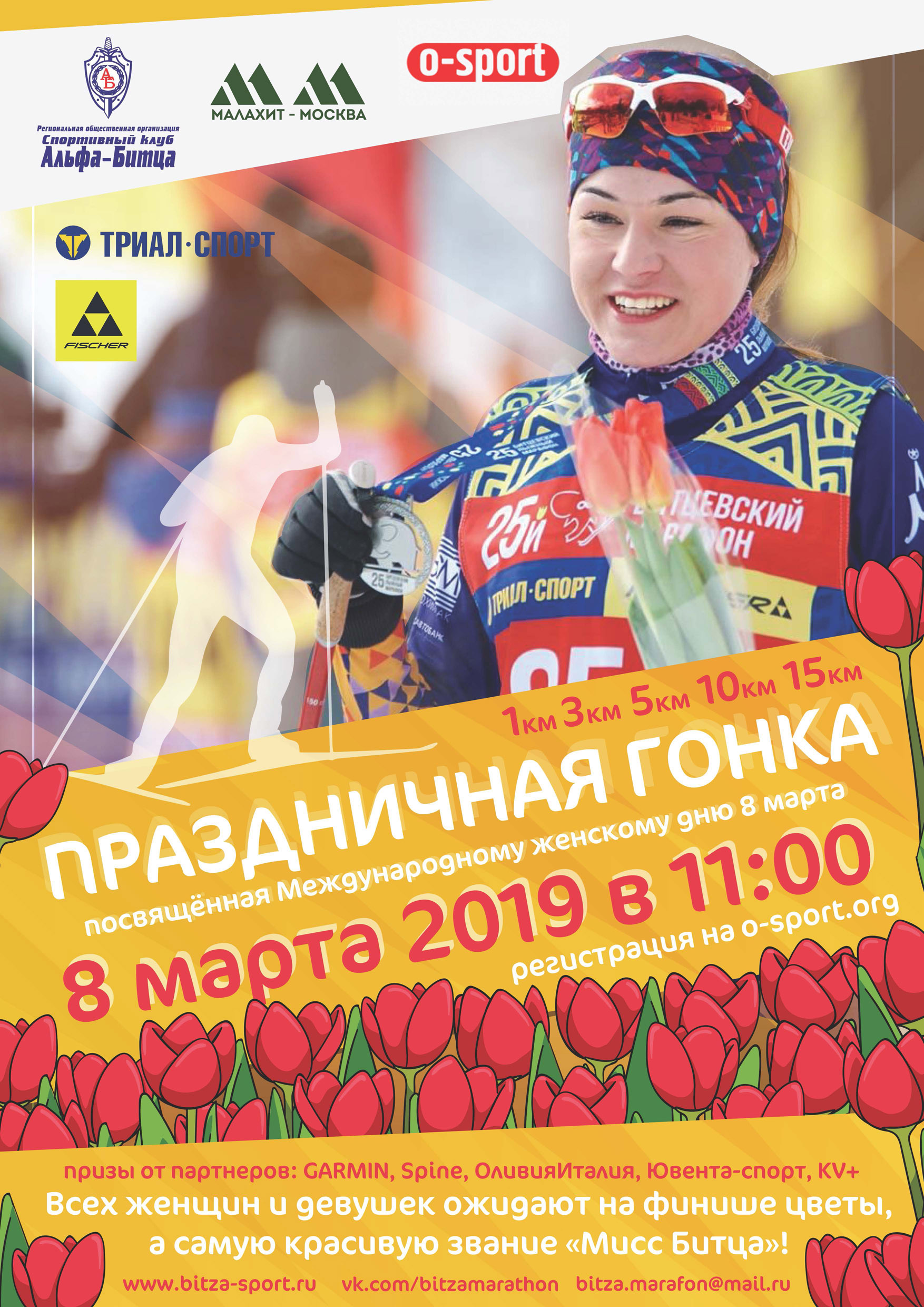 8 марта 2019г. на лыжных трассах спортивного клуба "Альфа-Битца" состоялась ПРАЗДНИЧНАЯ ГОНКА, посвящённая Международному женскому дню 8 марта. Дистанции 1,3,5,10,15 км.