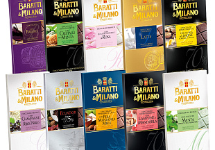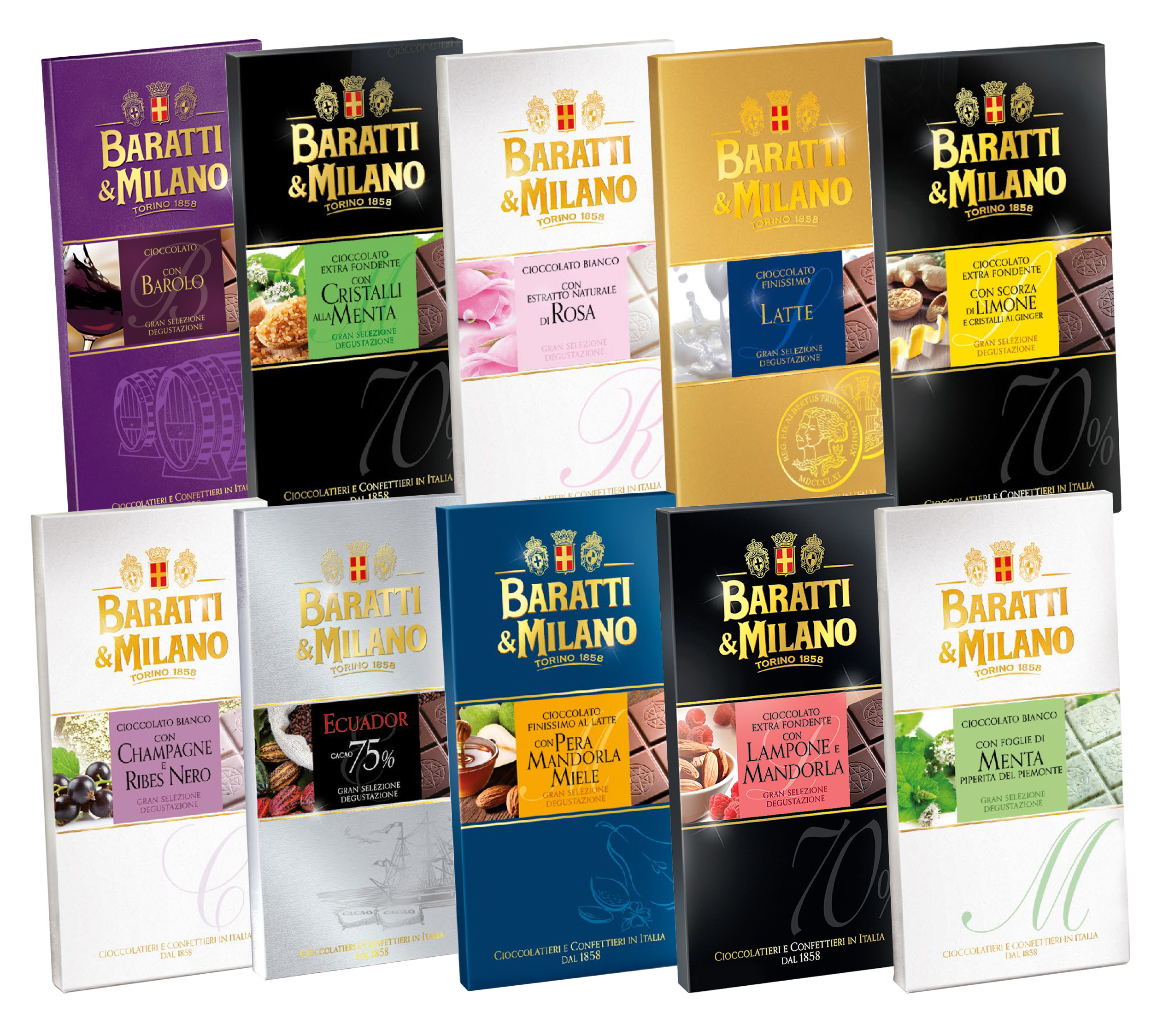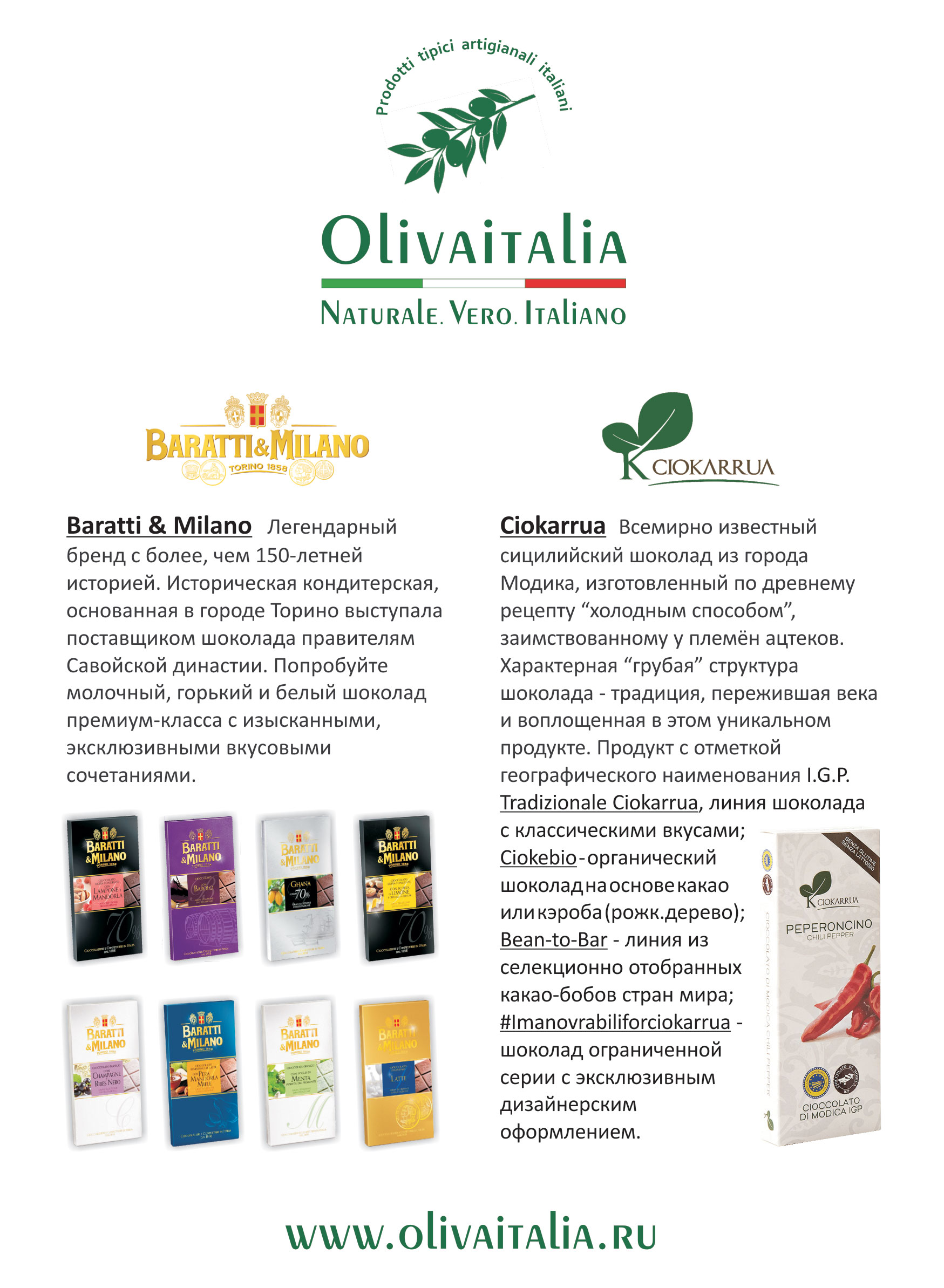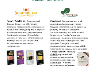 2) шоколад Baratti&Milano, изготавливаемый исторической мастерской из города Торино с 1858 года - горький, молочный и белый шоколад с эксклюзивными вкусами.